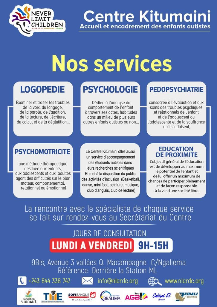 Le centre Kitumaini de Never Limit Children Asbl propose différents services pour l’accompagnement et l’encadrement des enfants atteints de l’autisme.